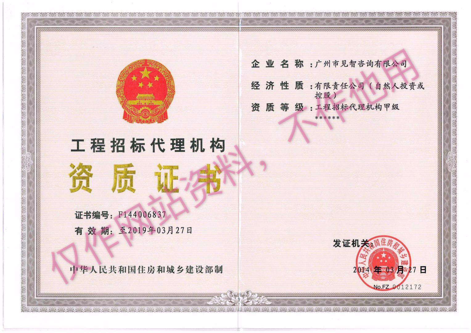 廣州市見智咨詢有限公司招標(biāo)代理資質(zhì)證書